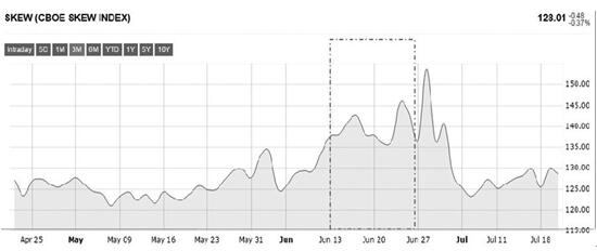 公投前汇率市场表现平稳,公投后则剧烈波动 脱欧公投对全球金融市场造成重大影响,其中影响最为直接的就是英镑汇率。公投前,英镑兑美元汇率一度平稳,甚至在公投前一天,英镑兑美元的汇率达到1.5002的高点,较4月初上涨了5.44%。表明汇率即期市场对于英国脱欧并不担忧。从当时的媒体报道中可以清楚看出,持这种乐观看法的汇率交易员居多。 图为脱欧公投前后英镑兑美元汇率表现 6月24日公投结果公布后,汇率市场即刻剧烈反应,当天英镑兑美元汇率跌至1.3675,跌幅达8.85%,6月25日继续下挫至1.3224,两天累计跌幅达11.85%。因此,事件发生后,不少投资者反观公投结果公布前汇率市场的平稳表现,惊呼此为黑天鹅事件。 期权市场提前预判到此次黑天鹅事件的发生 尽管汇率即期市场对脱欧公投“一抹黑”,但期权市场通过波动率、波动率指数、偏度指数等提前预判到此次黑天鹅事件的发生。 英镑兑美元期权隐含波动率在公投前异常上涨。期权产品本身具有灵敏的风险感知能力,通过隐含波动率来反映交易者对市场风险的判断。隐含波动率是将市场上的期权交易价格带入期权定价模型(如Black-Scholes模型),反推出的波动率数值,反映了参与交易的投资者对于未来标的资产波动率的预期,是市场集体、真实预期的表征。一般来说,期权的隐含波动率越高,其隐含的风险也就越大。不同期限期权的隐含波动率形成一条隐含波动率曲线,反映投资者对未来一段时间内标的资产波动率的预期。以5月1日英镑兑美元平值期权为例,通过隔夜、1周、1月、2月、3月等不同期限的期权价格反推出的隐含波动率,形成一条隐含波动率曲线。 从5月1日英镑兑美元期权隐含波动率曲线看,两个月后(即公投期间)评价期权出现异动,隐含波动率大幅跃升,意味着市场风险加大。 图为英镑兑美元平值期权隐含波动率期限结构(5月1日) 衡量股票市场整体风险的波动率指数大幅上涨 脱欧事件直接影响汇率市场,股票市场也未能独善其身。脱欧结果公布当日,标普500指数下跌3.59%,次日继续下跌1.81%。在脱欧公投结果公布前,衡量股票市场整体风险的波动率指数也大幅上升。 波动率指数也称恐慌指数,是根据一系列在市场上交易的期权合约价格所编制,能及时、客观、灵敏地反映金融市场压力状况,是衡量市场投资者情绪的“压力计”,是宏观审慎监管指标体系不可或缺的组成部分。 全球最著名的波动率指数是芝加哥期权交易所(CBOE)的VIX指数和欧洲期货交易所(Eurex)的VSTOXX指数,分别以S&P500指数期权和STOXX50指数期权为样本。这两个波动率指数在历次股票市场面临重大事件时,都准确及时地反映了市场压力状况,预判出了黑天鹅风险。6月中旬,VIX指数和VSTOXX指数都出现了大幅上涨。VIX指数从6月初的14.2涨至公投前的21.2,涨幅达49.3%;VSTOXX指数从6月初的21.6涨至公投前的38.5,涨幅达78.2%。 图为英国脱欧前后两大主要波动率指数表现 汇率市场也有波动率指数,CBOE发布的欧元货币波动率指数(EVZ)也表明,在进入6月以来,欧元货币波动率大幅上升,从6月6日的9.17上升至最高6月15日的14.49,涨幅达58.0%。 图为欧元货币波动率指数在脱欧公投期间剧烈波动 预测黑天鹅事件的偏度指数大幅上升 偏度指数是衡量“黑天鹅事件”最为直接的指数,同样基于期权市场价格编制,从不同角度反映投资者对市场未来尾部风险分布特征的预期,是波动率指数的重要补充。2010年CBOE编制了全球第一个也是目前为止唯一的偏度指数——SKEW,为金融市场参与者提供了继波动率指数之后又一新的风险参考指标。过往历史中,VIX和SKEW这对姊妹风险指数在全面反映美国金融市场风险方面发挥了重要的指示作用。 偏度指数基于美国股市过去20多年收益率分布为左偏偏离正态分布的厚尾这一现实,股市左偏分布特征与期权市场表现出的波动率曲线“左偏”现象是相对应的,因此可以通过期权市场价格提炼出来。理论上,偏度指数围绕100上下波动。当偏度指数>100时,表明市场预期标普500指数未来收益率分布呈现左偏特征,偏度指数越大,左侧尾部风险越大。6月中旬开始,偏度指数明显上升,并在公投结果公布前6月23日达到145.7,偏度指数准确预判了黑天鹅事件。 图为CBOE偏度指数预示了市场的高风险 期权市场为投资者提供了良好的避险工具 期权市场除通过衍生的波动率指数、偏度指数预判市场风险外,还为投资者提供了良好的避险工具。相对于期货而言,期权是一种更为精细的风险管理工具,能够有效度量和管理市场波动的风险,满足投资者多样化风险管理的需求。 根据DTCC(美国证券存托与清算公司)的数据,自今年4月起投资者就加大了对英镑期权的交易,平均每周的交易金额为200亿美元,尤其是2016年6月,平均每周的交易金额达270亿美元,公投结束当周的交易金额达到540亿美元。此后交投活跃一直保持到7月下旬。 图为公投期间英镑兑美元期权交易量明显增大 与其他主要货币相比,英镑兑美元期权的交易量占比也明显提高。通常情况下,在五种主要货币中,英镑对美元期权的交易量占比在18.4%左右,但在2016年6月,英镑对美元期权的交易量占比上升至28.1%,7月更是超过30%。利用期权对受英国公投影响最大的英镑进行避险,是市场投资者进行风险管理的重要选择。 图为公投期间英镑对美元期权的交易量占比上升 从方向来看,2016年3月至6月,英镑看跌期