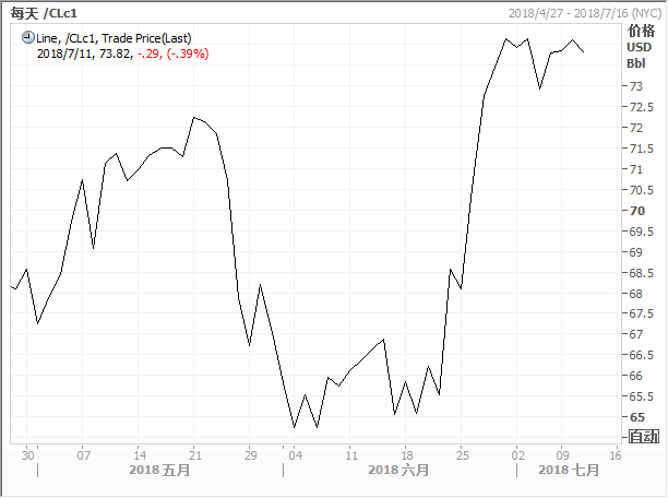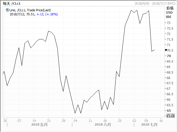 纽约商业期货交易所(NYMEX)轻质原油即期合约日走势图