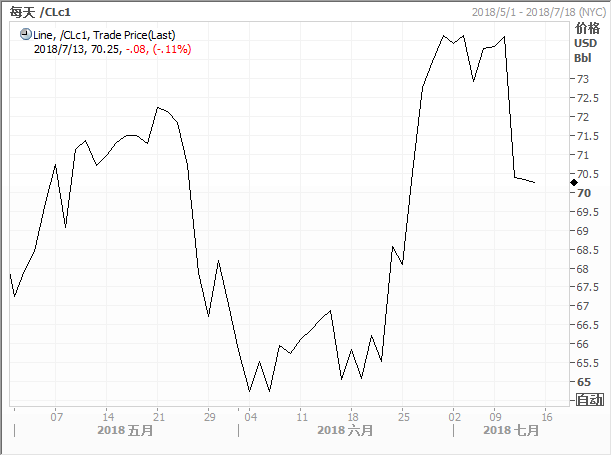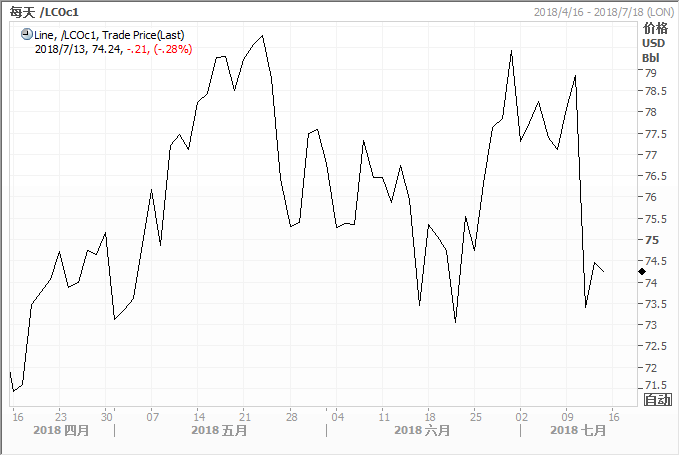 伦敦国际石油交易所(IPE)布兰特原油即期合约日走势图