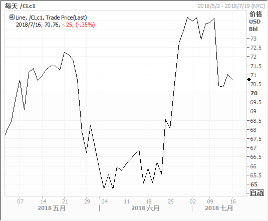纽约商业期货交易所(NYMEX)轻质原油即期合约日走势图