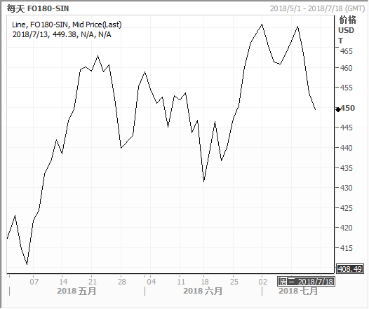 新加坡180 CST高硫燃料油走势图