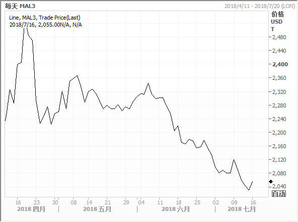 伦敦金属交易所(LME)铜和其他多数金属周一走低,之前公布的数据显示,第二季中国经济增速放缓,直指需求减弱。指标LME期铜CMCU3小跌0.7%,收报每吨6,192美元,徘徊在一年低点附近,2018年迄今下跌了14%。全球最大金属消费国中国的经济活动因抑制债务的努力而受阻,与此同时,随着与美国的贸易战愈演愈烈,6月工业产出增幅降至两年低点。瑞士宝盛集团的大宗商品分析师Carsten Menke表示,中国国内生产总值(GDP)数据显示经济总体稳定,但反映出“旧经济”或基础设施领域存在一些疲弱。“这些领域占中国金属需求的40%至60%,如果中国旧经济放缓,这不是件好事,”他说。伦敦金属交易所注册仓库的总体铜库存增加1,525吨,至25.72万吨,但仍处于1月以来的最低水平。中国商务部表示,周一中国在世界贸易组织(WTO)就美国301调查项下对中方2,000亿美元输美产品征税建议措施追加起诉。国际货币基金组织(IMF)周一警告称,发生不断升级和持久贸易冲突的可能性越来越高,有可能破坏经济复苏,抑制中期增长前景。期铝CMAL3上扬1.1%,报每吨2,054美元,接近美国从4月6日开始制裁全球最大铝生产商俄铝0486.HK以来的最低水平。数据显示,中国铝生产商正通过提高产量来应对供应趋紧的局面。据路透根据官方数据进行的计算,中国6月铝产量增长0.8%,至283万吨,以日产量计算为2017年6月以来的最高水平。期锌CMZN3收跌4%,报每吨2,474美元。期铅CMPB3跌1.2%,报每吨2,175美元。期锡CMSN3回落1.5%,报每吨19,500美元。期镍CMNI3下挫2.2%,报每吨13,670美元。