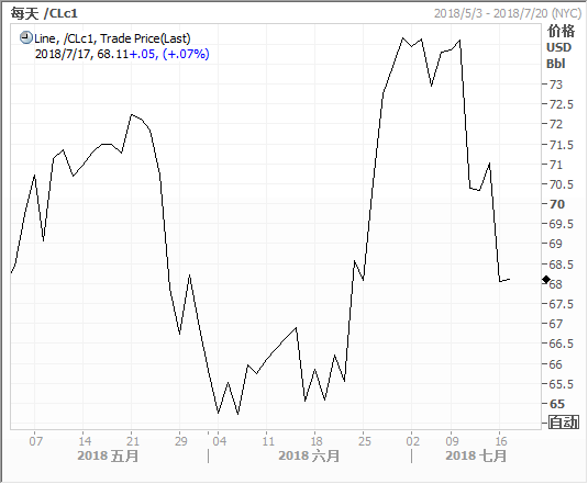 纽约商业期货交易所(NYMEX)轻质原油即期合约日走势图
