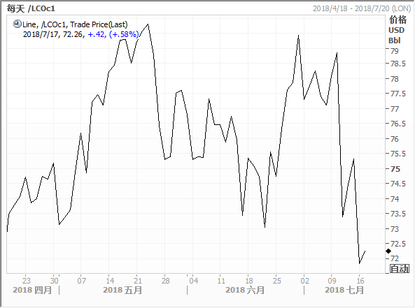 伦敦国际石油交易所(IPE)布兰特原油即期合约日走势图