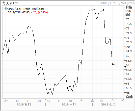 纽约商业期货交易所(NYMEX)轻质原油即期合约日走势图