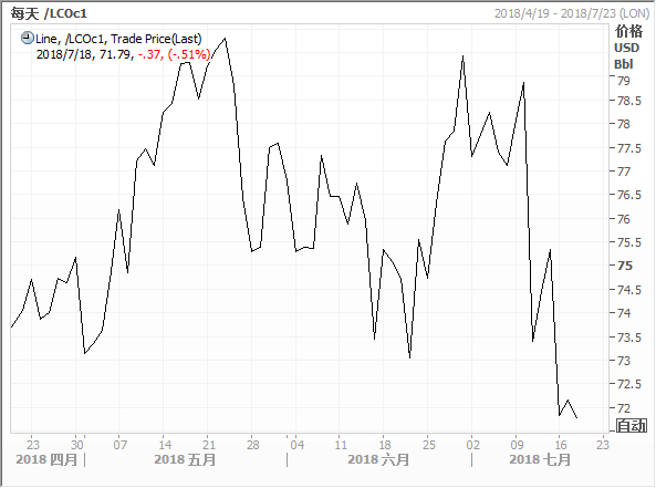 伦敦国际石油交易所(IPE)布兰特原油即期合约日走势图