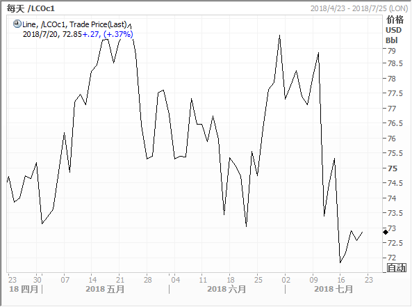 伦敦国际石油交易所(IPE)布兰特原油即期合约日走势图
