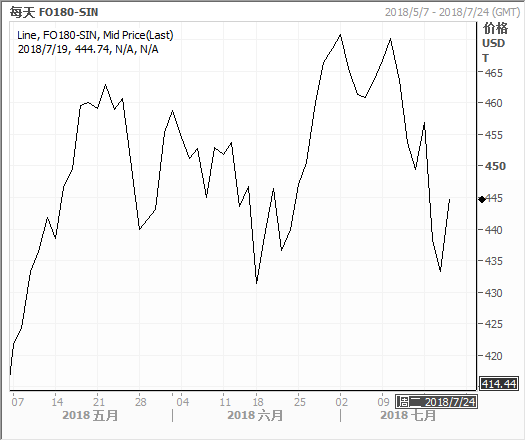 新加坡180 CST高硫燃料油走势图