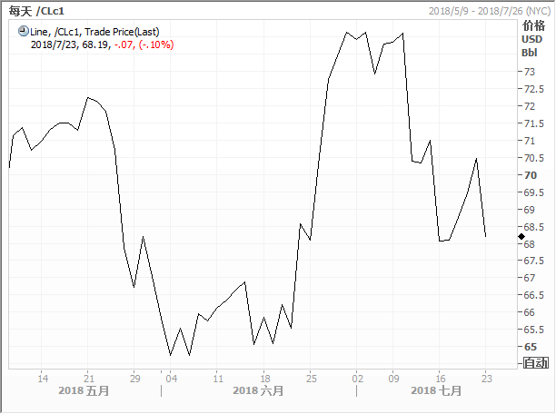 纽约商业期货交易所(NYMEX)轻质原油即期合约日走势图