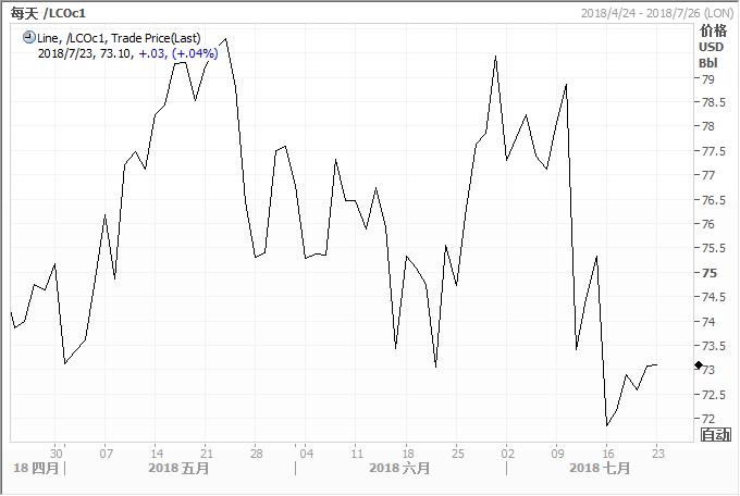 伦敦国际石油交易所(IPE)布兰特原油即期合约日走势图