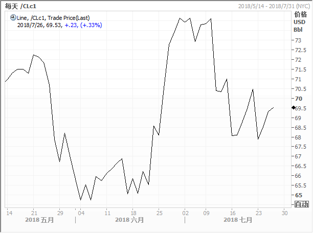 纽约商业期货交易所(NYMEX)轻质原油即期合约日走势图