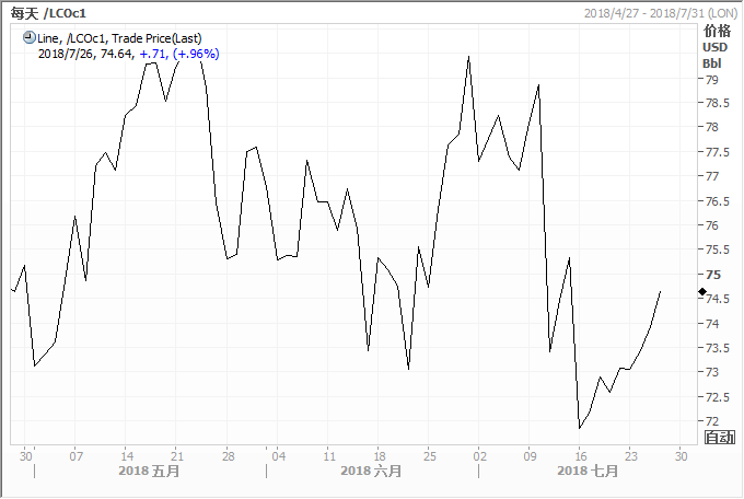 伦敦国际石油交易所(IPE)布兰特原油即期合约日走势图