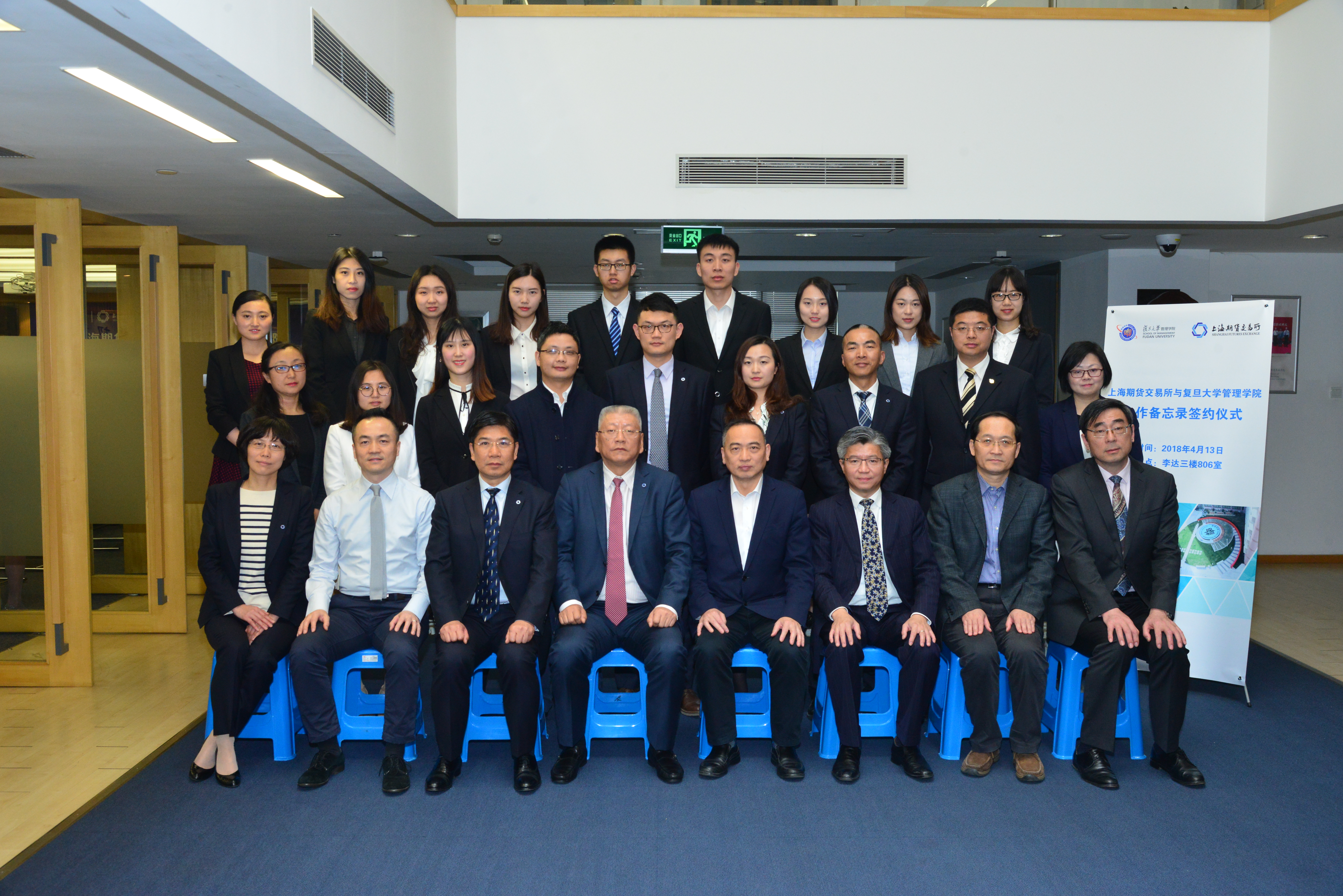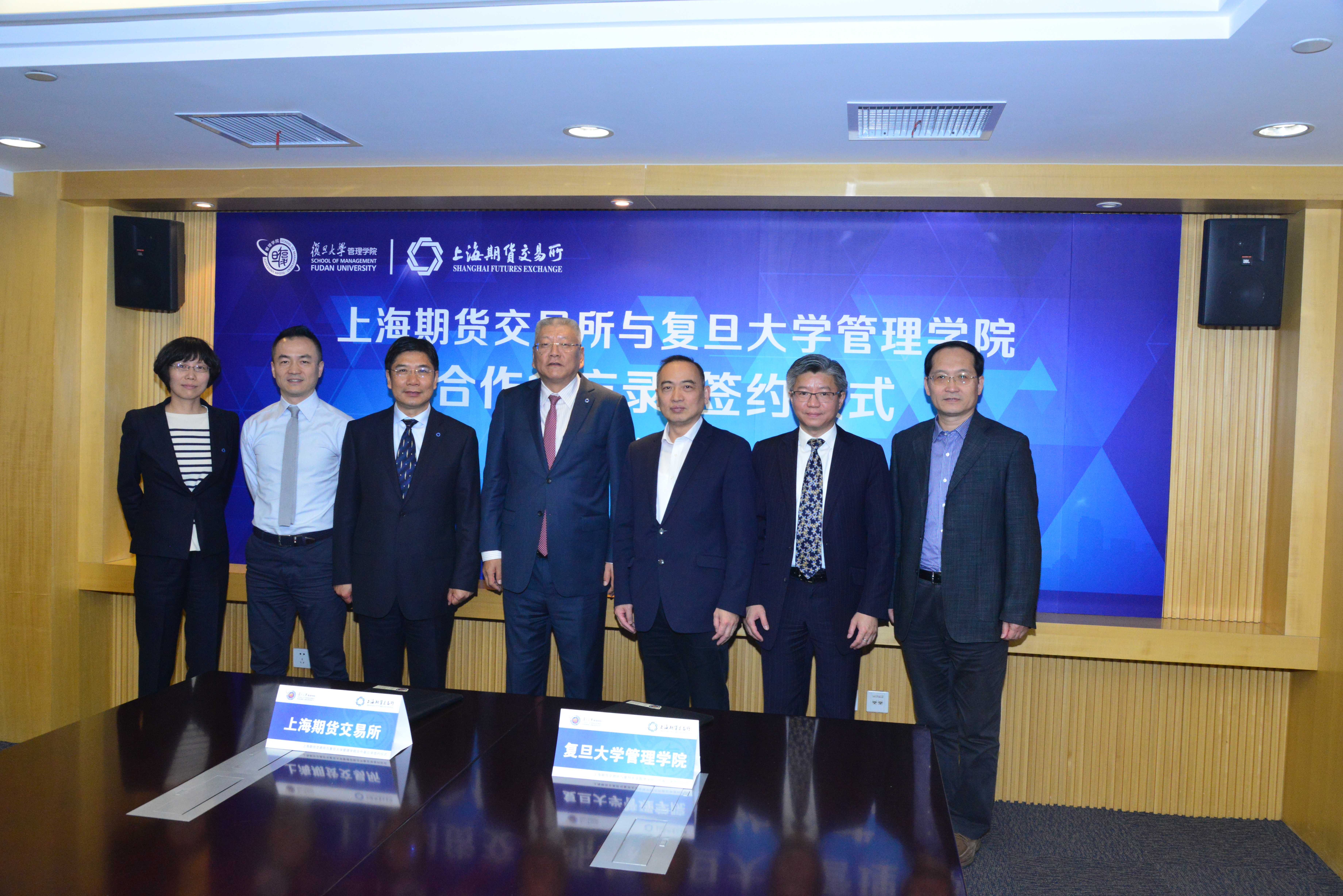 2018年4月13日,上海期货交易所(下称上期所)与复旦大学管理学院签订战略合作备忘录。双方将在课程开设、学术研究、专项研究及学生实践等多方面开展具体合作。上期所党委书记、理事长姜岩,复旦大学党委副书记、纪委书记袁正宏教授出席仪式并致辞;上期所党委委员、副总经理叶春和与复旦大学管理学院院长陆雄文签订合作备忘录。